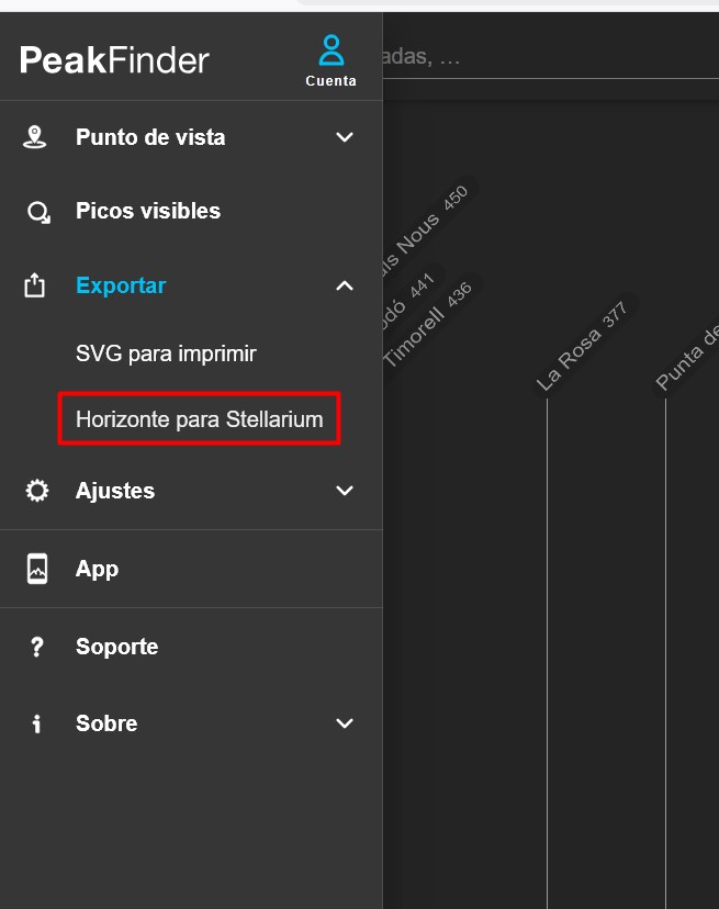 Cuando tenga la localización podrá exportar la ubicación y exportarla a Stellarium